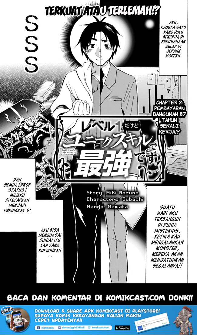 Level 1 Dakedo Unique Skill de Saikyou desu Chapter Ch 2
